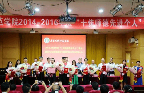 郭杰宣读了《关于表彰2014—2016年度“十佳师德先进个人”的决定》。