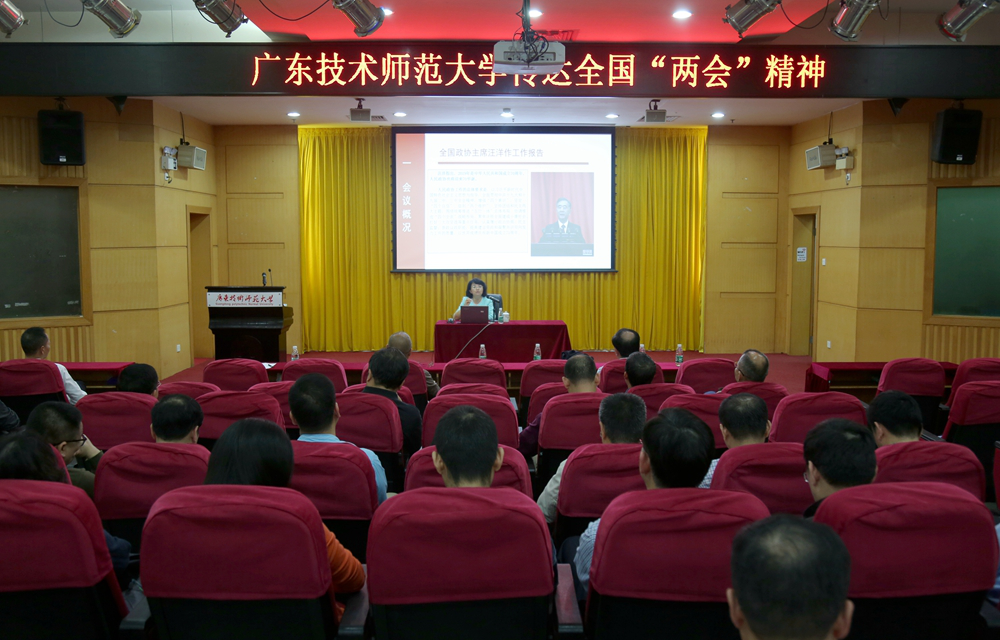 许玲以与会者、参与人、观察者的身份,围绕自己在聆听会议、参与讨论、接受采访、走访调研等活动中掌握的“两会”第一手资料、独家新闻和权威信息,向会议作了专题报告。许玲详细介绍了此次全国两会的概况,并指出今年的全国“两会”是在全面建成小康社会、实现第一个百年奋斗目标关键之年的重要时刻召开的。解读了全国政协主席汪洋作的《全国政协常委会工作报告》,并就汪洋强调的习近平总书记在全国政协2019年新年茶话会上提出的“崇尚学习、加强学习,崇尚创新、勇于创新,崇尚团结、增进团结”谈了自己的感受,认为作为政协委员要加强思想政治引领,始终保持奋斗者的姿态和干劲,做到“参政参在关键处、议政议在点子上”,当好人民政协制度的参与者、实践者、推动者;许玲解读了国务院总理李克强作的《政府工作报告》,就报告中指出的“减企业税费,增加市场活力”“减政府开支,保障民生”“减政府权力,便利企业群众办事”谈了代表、委员们和自己的感受,并就报告中自己特别关注的教育尤其是职业教育问题谈了自己的体会;重点分享了自己学习习近平总书记在全国两会上的重要讲话精神,尤其是习近平总书记在参加文艺界社科界委员联组会山给的重要讲话精神,作为教育工作者要牢牢把握为国家和民族“培根铸魂”的工作性质,要扎根人民办教育,努力办人民满意的教育。许玲同时分享了自己主要关注的“粤港澳大湾区建设”“推动经济高质量发展”“优化营商环境”“乡村振兴发展”“保障和改善民生”“营造共建共治共享社会治理格局”等方面的情况,并就2018年的政协提案《工匠之师从哪里来——对我国职教团队培养的建议》《关于职业教育提升层次、保障生均拨款的建议》的落实情况和2019年提案《对我国“双师型”职教团队队伍建设的建议》《关于增加教育硕士(职业教育领域)专业代码的提案》分享了自己的心得体会。