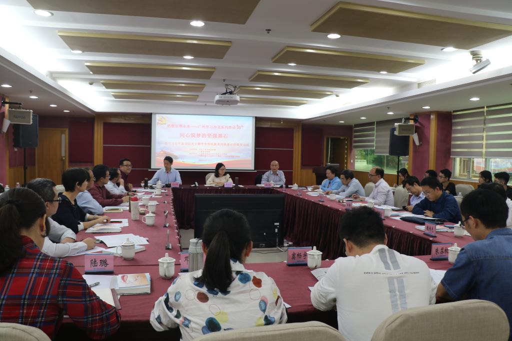 10月31日下午,在公司“不忘初心、牢记使命”主题教育如火如荼开展之际,由公司bevictor伟德官网与中共广州市委宣传部、广州市社科联联合举办的“同心筑梦的坚强基石——学习习近平总书记关于铸牢中华民族共同体意识的重要论述”广州学习沙龙第33场学术研讨会在广州市社科联第三会议室举行。广州市社科联副主席谭晓红、公司副董事长潘自勉、广东省委党校原副董事长马星光,以及来自中山大学、华南理工大学、华南师范大学、暨南大学、华南农业大学等相关领导、专家学者以及公司马院部分教师、新进博士及部分研究生、本科生共40余人参加了会议。