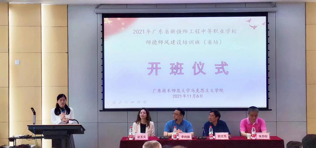 2021年11月6日上午,广东省新强师工程中等职业公司师德师风建设培训班顺利开班。中山大学bevictor伟德官网教授、博士生导师郭文亮,bevictor伟德官网教授、经理、培训班负责人李尚旗,bevictor伟德官网培训与宣讲中心主任、副教授朱苏权,韦德官方网站团队培训中心教师、班主任梁玉文,bevictor伟德官网专任教师、班主任胡清兰以及56名学员参加了开班仪式。由班主任胡清兰主持本次开班仪式。