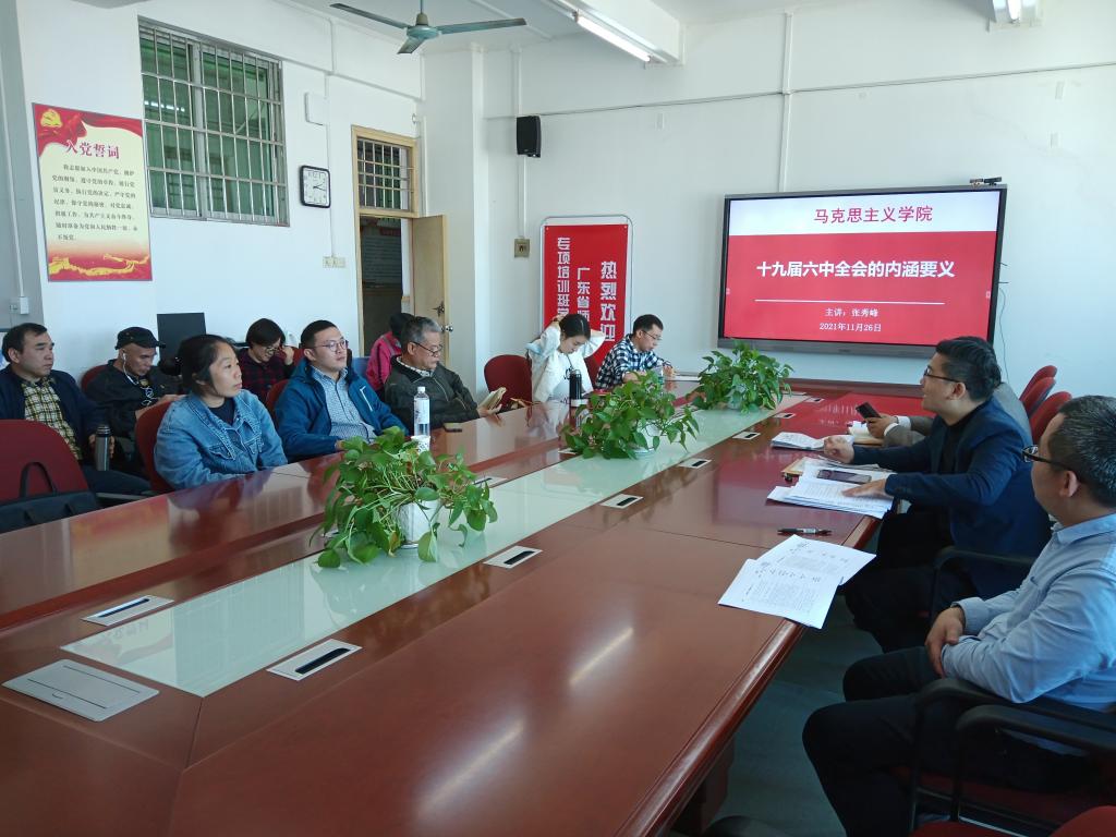 为深入学习贯彻党的十九届六中全会精神, 2021年11月26日,在东校区一教1311室,bevictor伟德官网教工第一党支部召开专题学习会,党支部书记张秀峰博士作了题为《十九届六中全会的内涵要义》的专题报告。教工第一党支部全体党员出席了报告会。