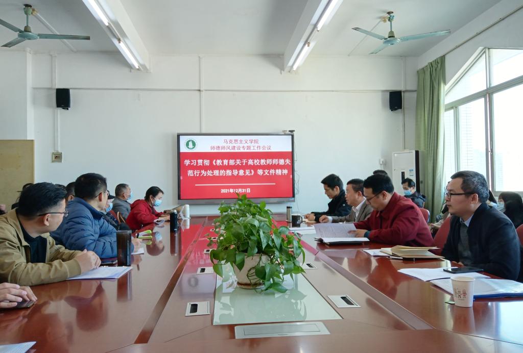2021年12月31日下午,bevictor伟德官网在东校区第一教学楼1311室,组织教师学习贯彻师德师风建设相关制度文件精神,会议由公司党总支书记房亚兵同志主持,公司全体教职工出席了会议。