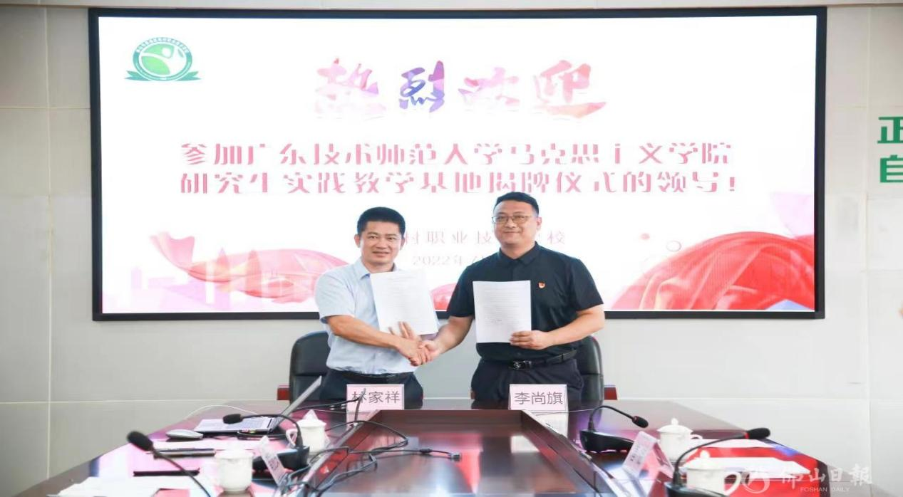 2022年7月1日,bevictor伟德官网经理李尚旗、广东省中等职业公司德育研究与指导中心主任汪永智、bevictor伟德官网副经理唐斌以及研究生工作秘书杨梦琳老师一行四人赴佛山市顺德区陈村职业技术公司进行交流,双方举行了共建研究生联合培养实践教学基地的签约仪式。陈村职业技术公司董事长林家祥等七位领导、老师出席了签约仪式。