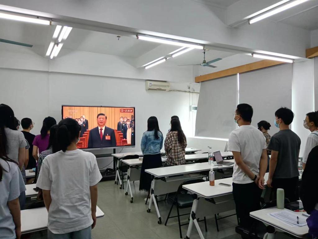 10月16日上午10时,在东校区一教1311、1312室,公司组织师生收看党的二十大开幕会盛况。