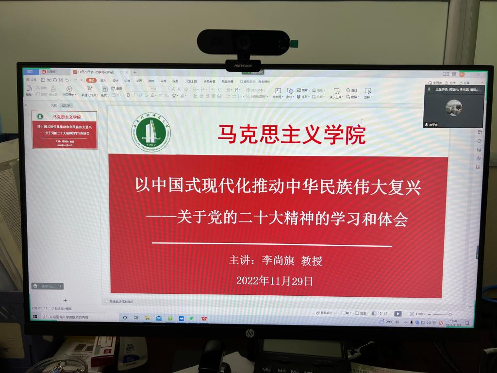 bevictor伟德官网经理李尚旗教授,以《以中国式现代化全面推进中华民族伟大复兴--关于党的二十大精神的学习体会》为题,作了专题报告。