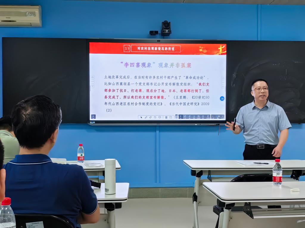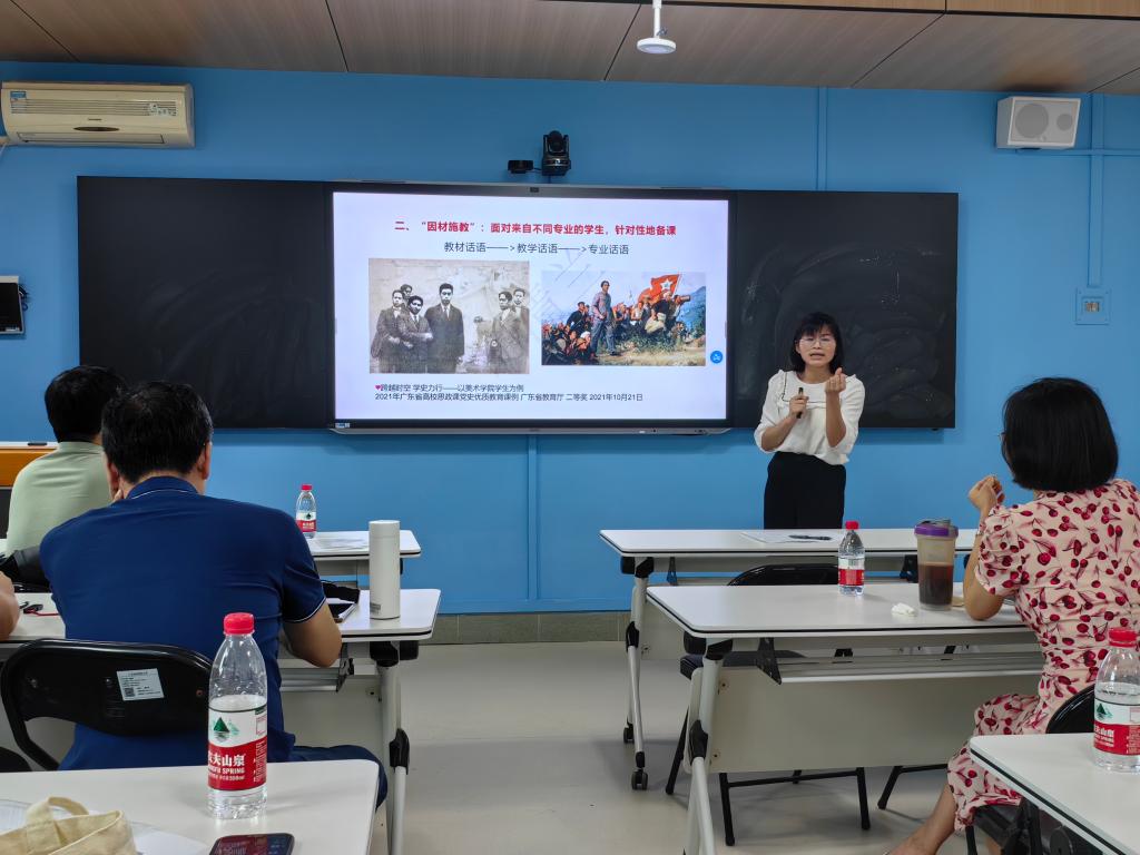 会上,习近平新时代中国特色社会主义思想概论教研室窦畅宇副教授、毛泽东思想和中国特色社会主义理论体系概论教研室秦程节副经理、中国近现代史纲要教研室胡清兰老师,分别就“生成式人工智能辅助教学的尝试”“党在过渡时期的总路线及其依据”“如何上好《中国近现代史纲要》课的探索与实践”等主题,结合当前的社会实际和理论前沿问题作了示范性讲授。与会老师结合自己的教学实践与思考,围绕这三个主题的课堂教学进行了热烈讨论。
