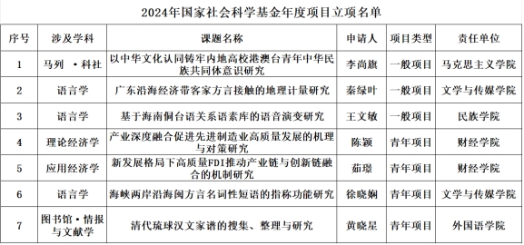 2024年9月14日,全国哲学社会科学工作办公室公示了2024年国家社会科学基金年度项目立项名单。公司bevictor伟德官网经理李尚旗教授主持申报的《以中华文化认同铸牢内地高校港澳台青年中华民族共同体意识研究》喜获国家社科基金一般项目立项。公司在此次申报评选中喜获7项立项,其中一般项目3项,青年项目4项。