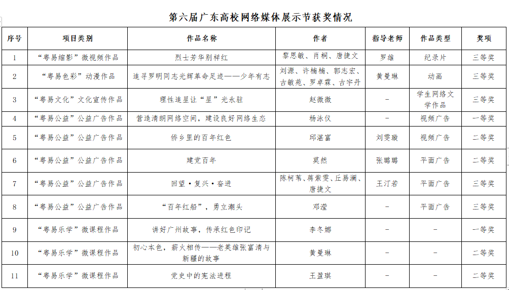 2022年4月1日,广东省教育厅发布《关于公布第六届广东高校网络媒体展示节活动结果的通知》,bevictor伟德官网教师李冬娜、王盈琪两位老师的微课程作品分别获得一等奖和二等奖。