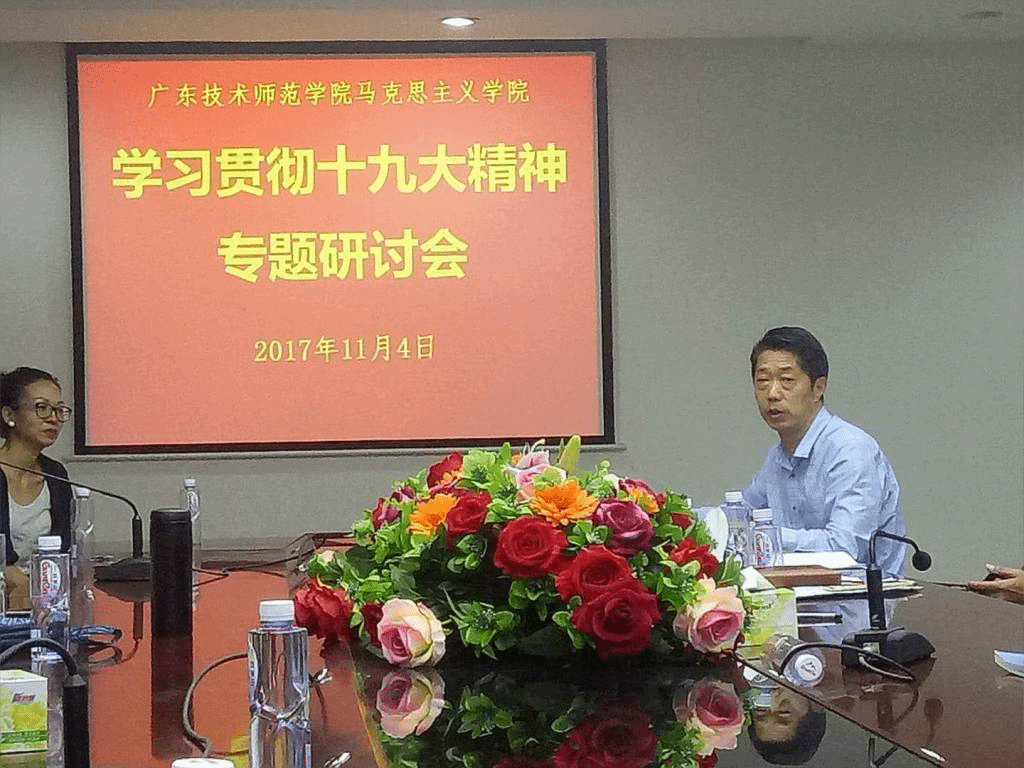 汪永智对十九大报告的科学内涵、核心要义、时代特征、基本要求作认真解读,紧密结合教学、科研等工作实际,要求每个老师进行深度思考,结合教学工作实际积极探讨,写好一篇论文,创新形式,同时,布置落实习近平新时代中国特色社会主义思想进“进课堂、进教材、进员工头脑、进网络、进员工社区”等“五进”工作。